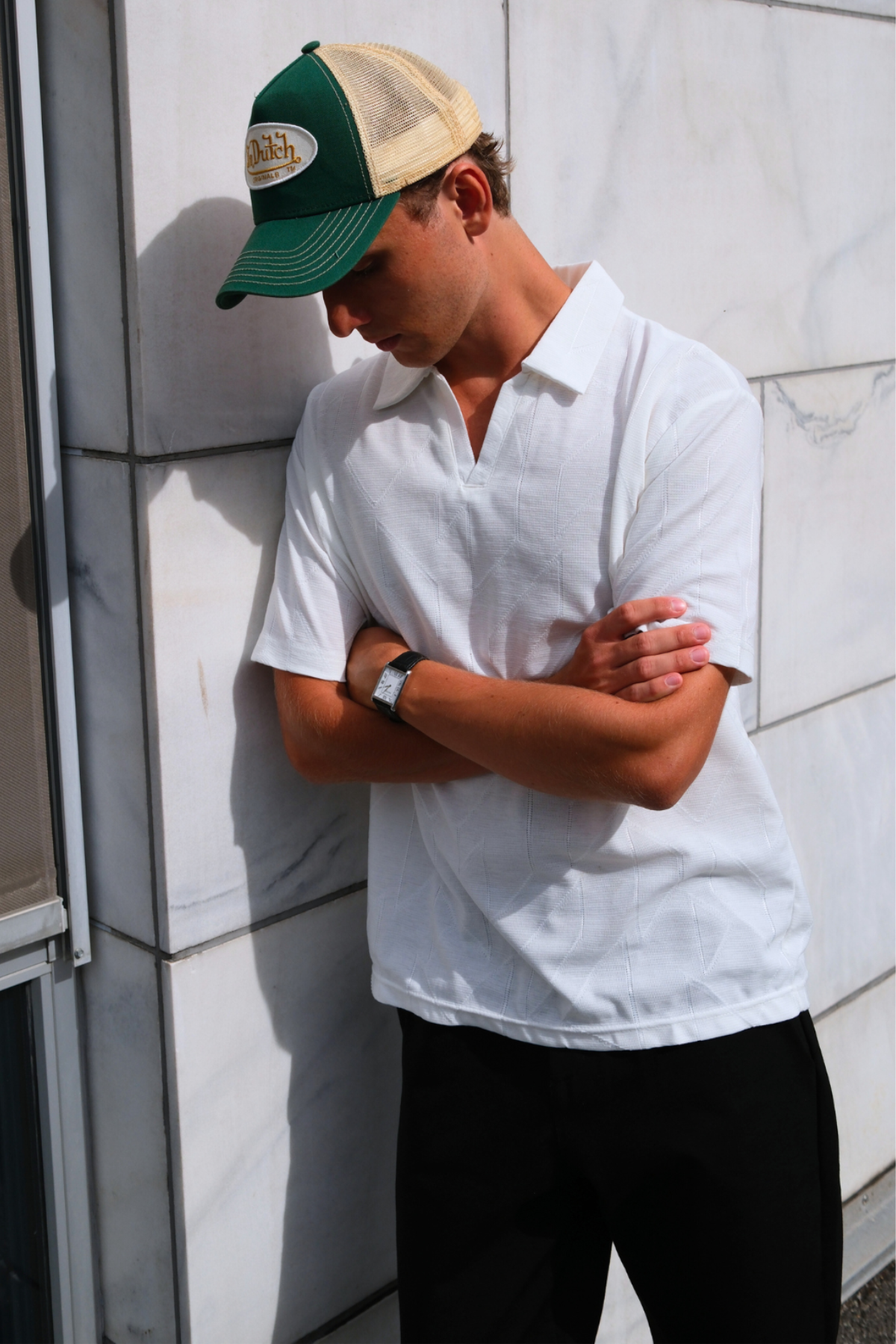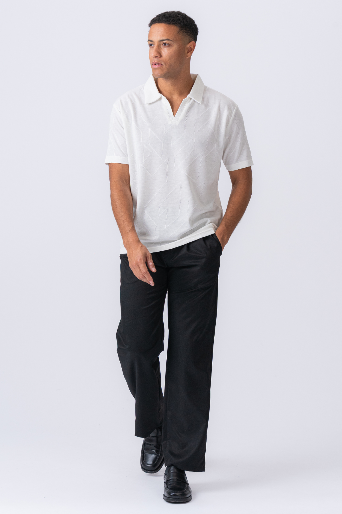 Det, der virkelig adskiller Atlas poloen, er dens unikke, teksturerede overflade. Den subtile, men alligevel markante, vævning i stoffet tilføjer en exceptionel dybde og et luksuriøst præg, som løfter den langt over en standard polo. Denne detalje fanger lyset på en raffineret måde og skaber et visuelt interessant udtryk, der signalerer kvalitet og øje for detaljen. Den klassiske hvide farve fungerer som det perfekte lærred for teksturen, hvilket resulterer i et stykke tøj, der er både tidløst og moderne.