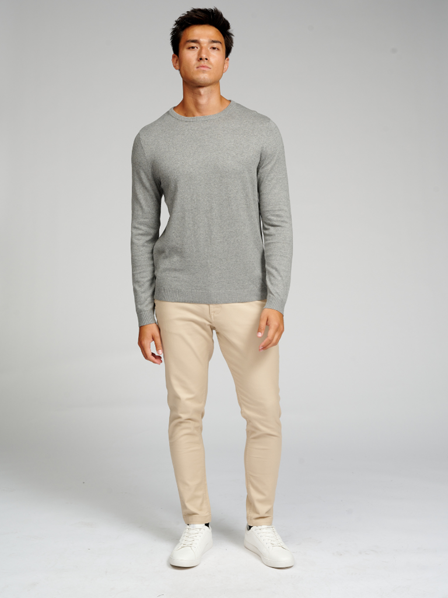 Du ser her Pulloveren i farven grå. Det er en neutral farve, der er ideel til hverdagsbrug.