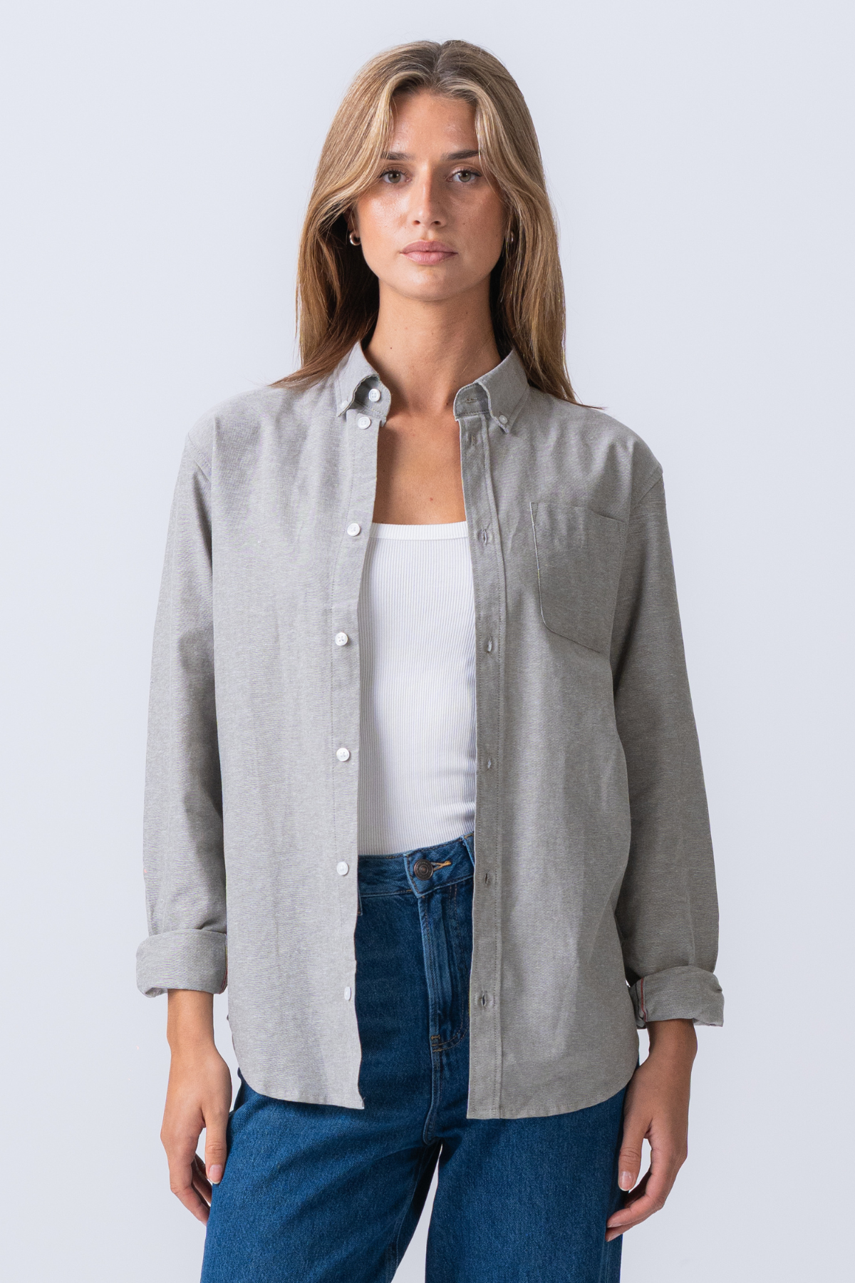 Indhyl dig i ubesværet elegance med vores Boyfriend Oxford Skjorte i en sofistikeret grå nuance. Dette er ikke bare en skjorte; det er en garderobe-helt, der kombinerer den afslappede komfort, du elsker, med det klassiske, skarpe look, der aldrig går af mode. Designet til den moderne kvinde, der værdsætter både stil og kvalitet.