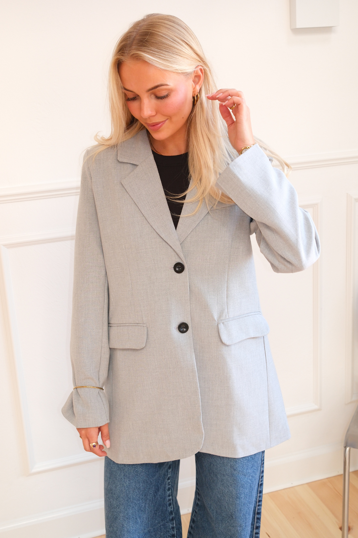 Træd ind i en verden af ubesværet elegance med Claire Oversized Blazer fra TeeShoppen. Dette er ikke bare en blazer; det er din nye bedste ven i garderoben, der ubesværet løfter ethvert outfit fra almindeligt til ekstraordinært. Den smukke, lysegrå nuance og det moderne, afslappede snit skaber en perfekt balance mellem power og komfort, hvilket gør den til en absolut nødvendighed for den stilbevidste kvinde.