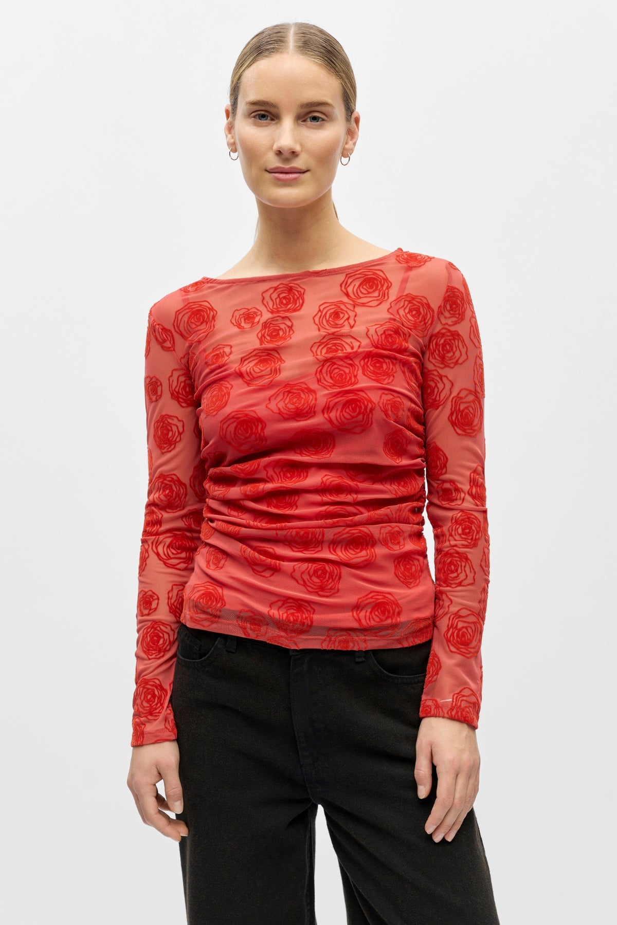 Træd ind i en verden af elegance og feminin charme med Elodie Top - Cranberry Poinsette Roses fra Object. Denne top er ikke bare en beklædningsgenstand; det er en følelse. Den dybe, passionerede røde farve, prydet med et delikat rosenprint, fanger øjet og tilføjer et øjeblikkeligt løft til ethvert outfit. Forestil dig den selvtillid, du udstråler, når du bærer et design, der er skabt til at imponere og udtrykke din personlige stil.