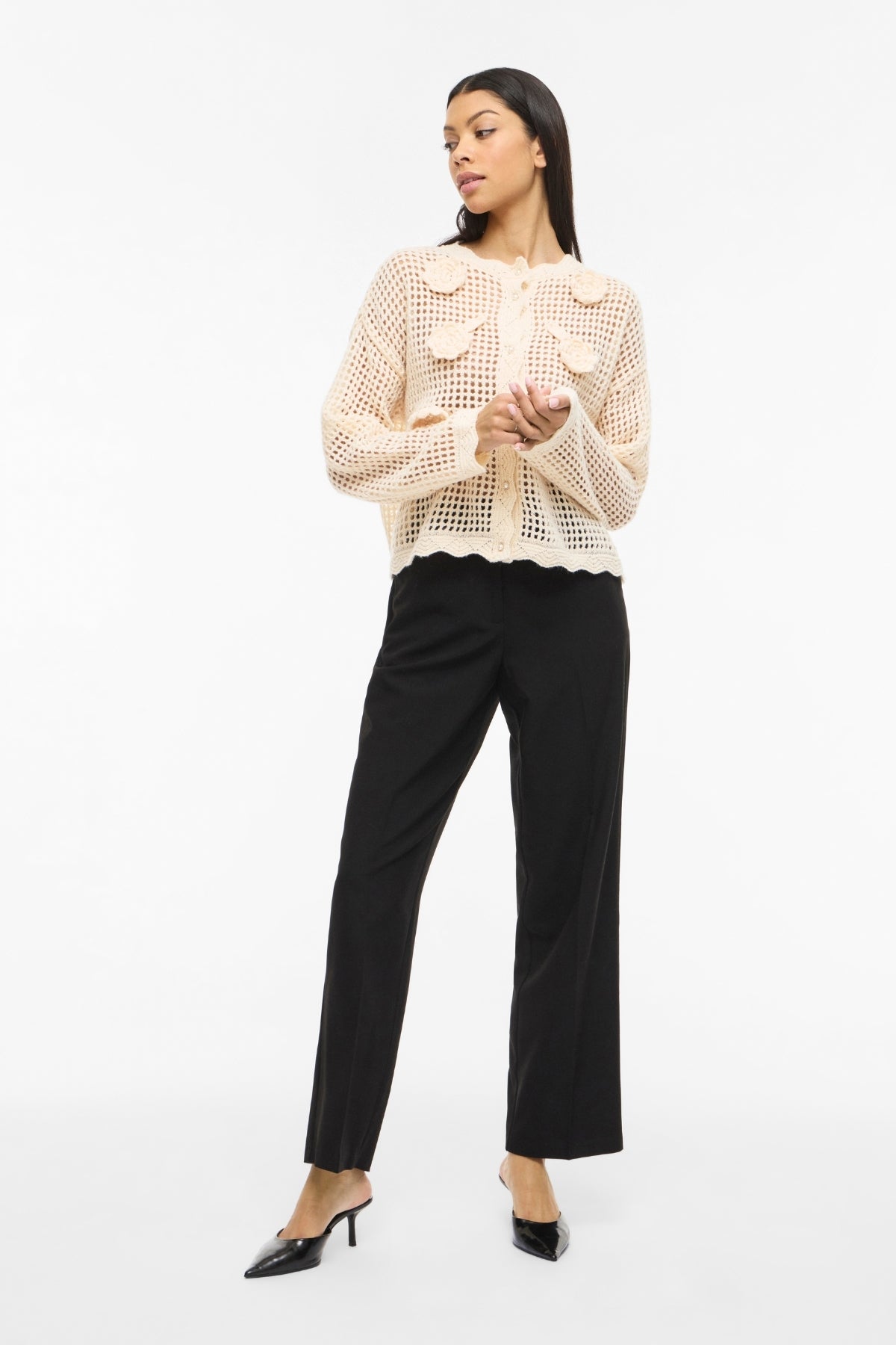 Hjertet i Enny cardiganen er dens unikke blomstermønster. Det er designet til at fange øjet og skabe et sofistikeret udtryk. Mønsteret giver struktur og dybde til strikken, hvilket løfter dit outfit fra simpelt til enestående. Perfekt til de dage, hvor du ønsker at føle dig lidt ekstra speciel, uanset om du er på kontoret, til en caféaftale eller nyder en afslappende weekend.
