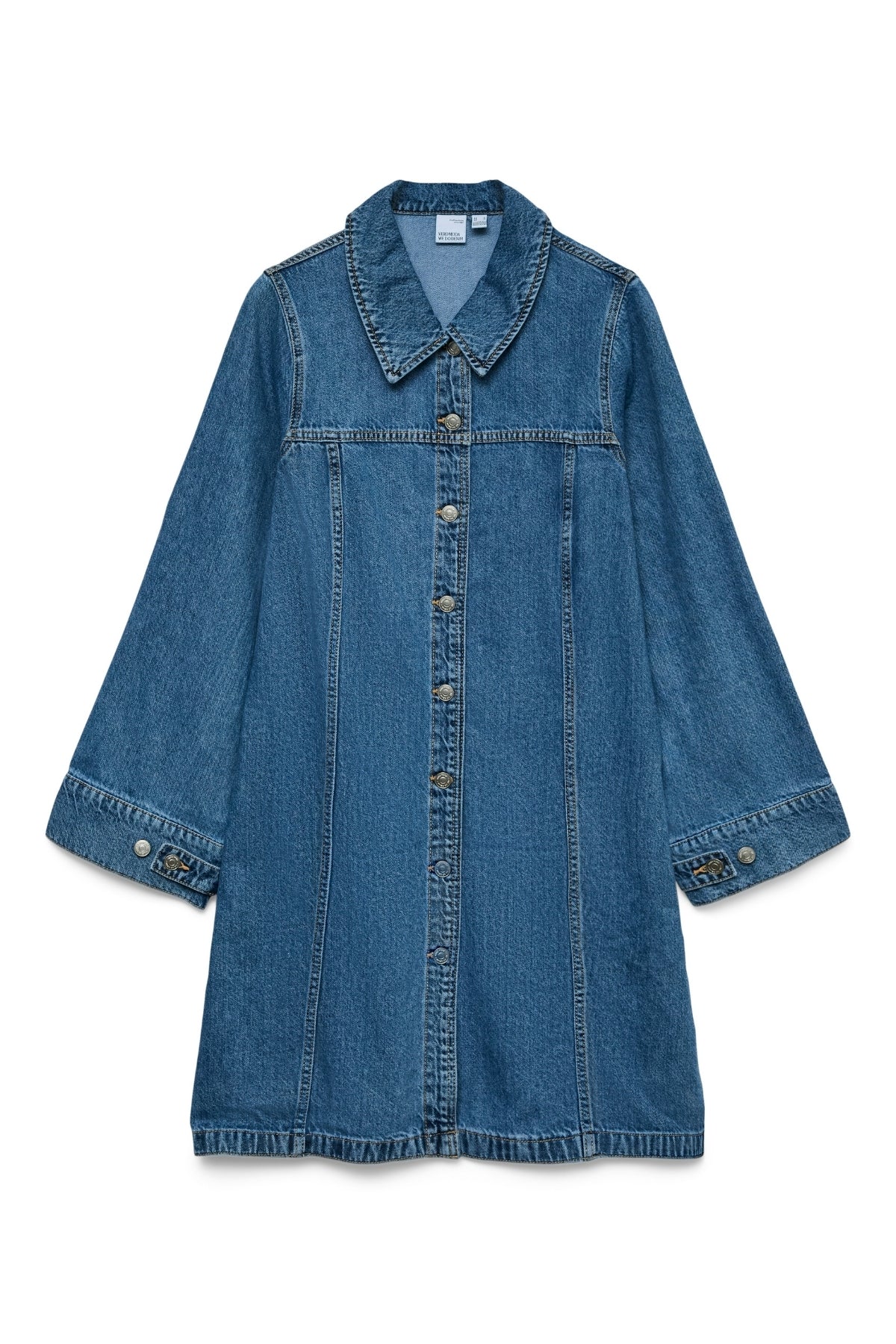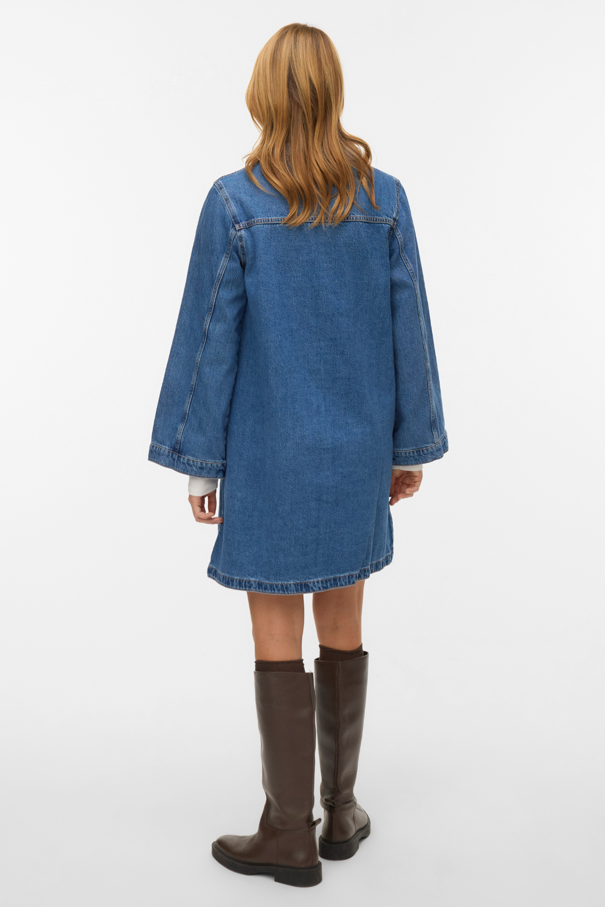 Træd ind i en verden af ubesværet stil med Findo Kort Denimkjole fra Vero Moda. Denne kjole er ikke bare et stykke tøj; det er en følelse af sommer, frihed og tidløs mode. Designet til den moderne kvinde, der værdsætter både komfort og et smart udtryk, er Findo kjolen den perfekte tilføjelse til enhver garderobe. Den klassiske Medium Blue Denim farve sikrer, at den aldrig går af mode og kan styles på utallige måder.