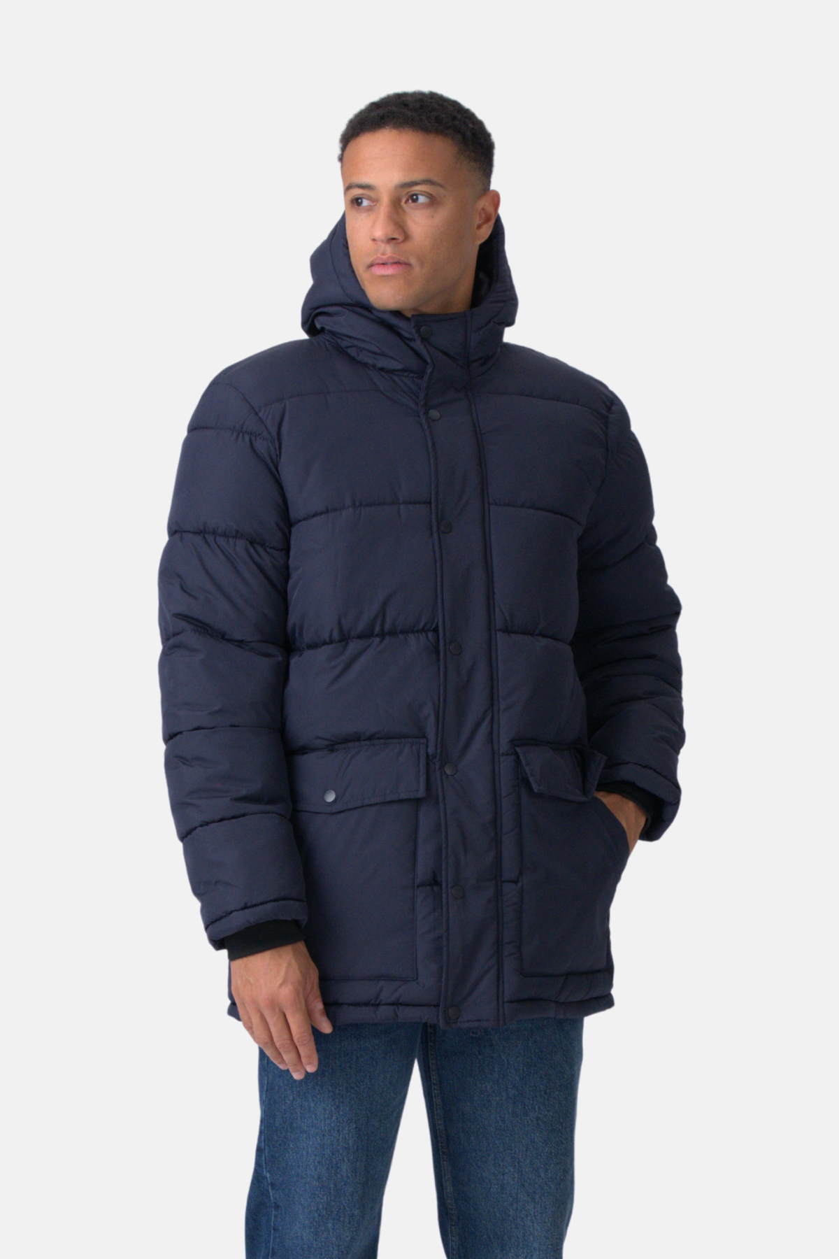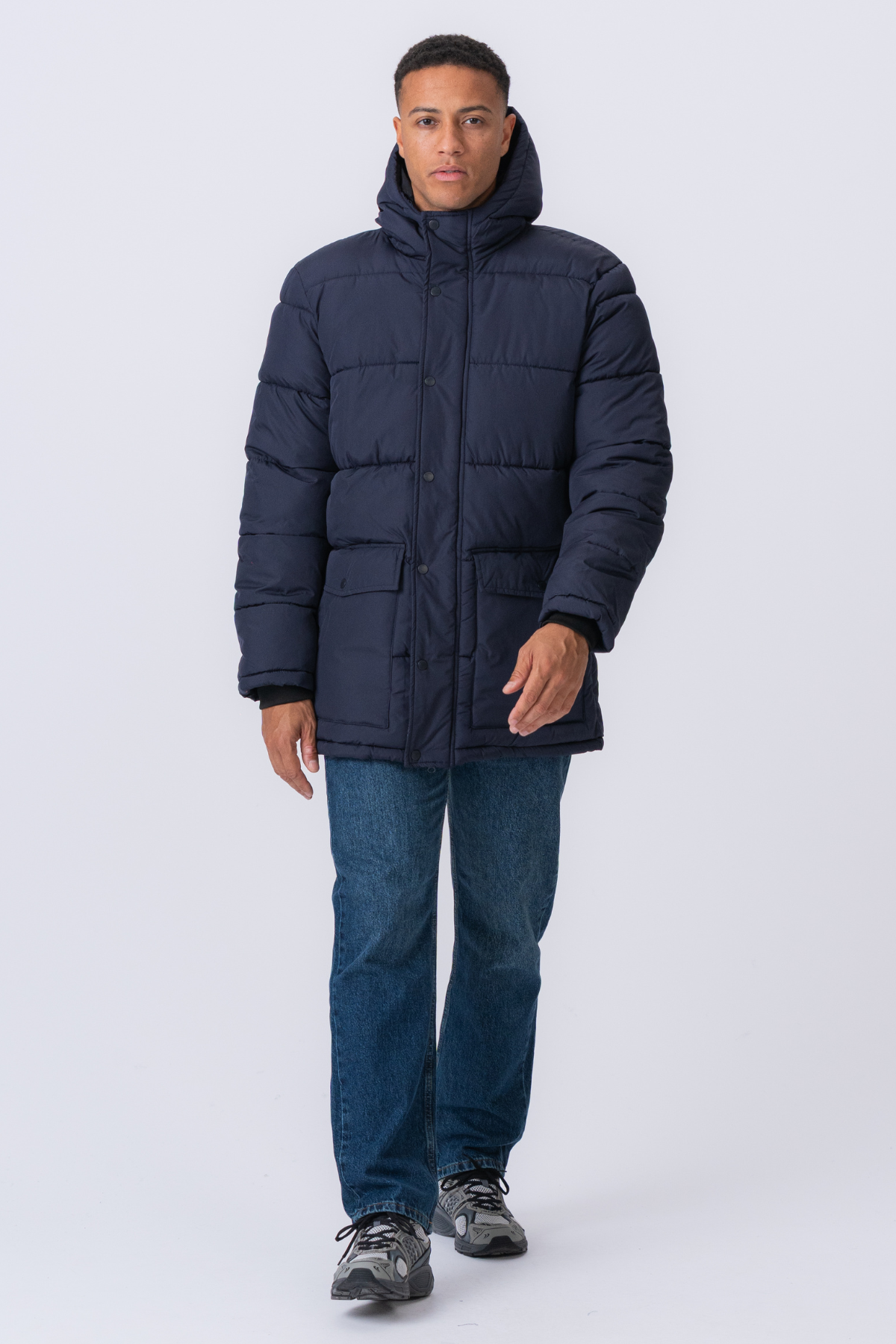 Gør dig klar til at omfavne de kolde måneder med stil og kompromisløs komfort med vores Lange Puffer Jakke i en klassisk Navy farve. Dette er ikke bare en jakke; det er din trofaste partner, der sikrer, at du ser skarp ud og føler dig varm, uanset hvad vejrudsigten siger. Forestil dig følelsen af at være fuldstændig beskyttet mod bidende vind og let regn, pakket ind i en jakke, der føles overraskende let, men som yder en formidabel isolering. Den dybe, alsidige Navy farve sikrer, at du altid fremstår velklædt, om du er på vej til arbejde, en tur i skoven eller en aften i byen.