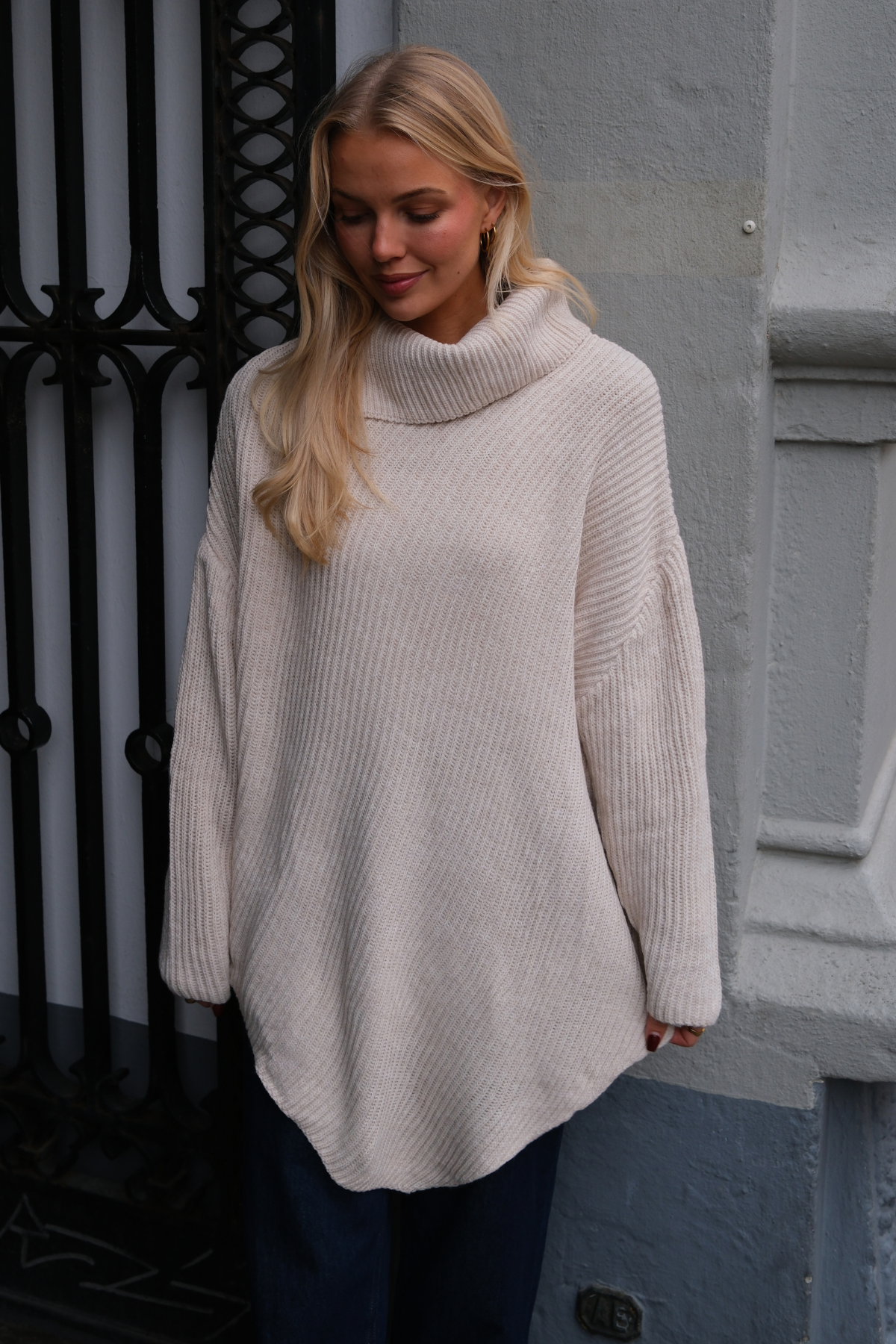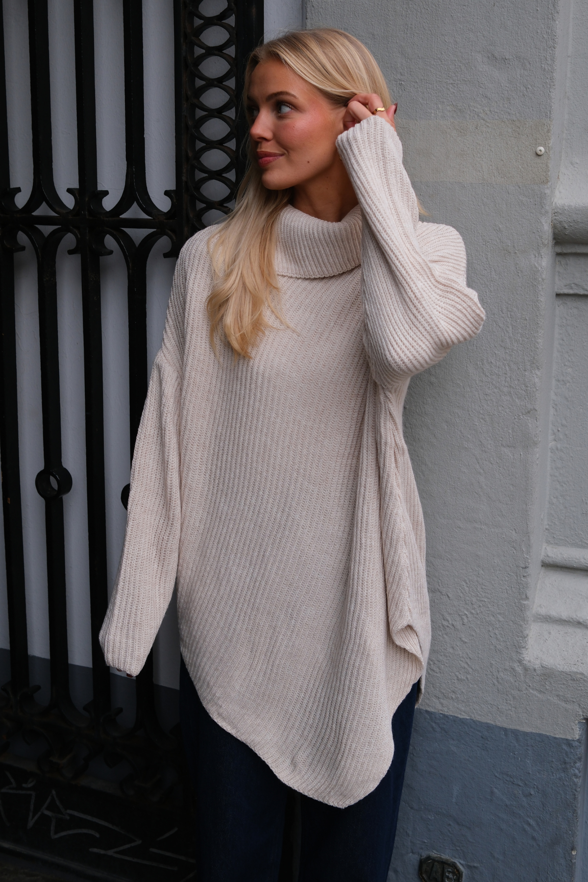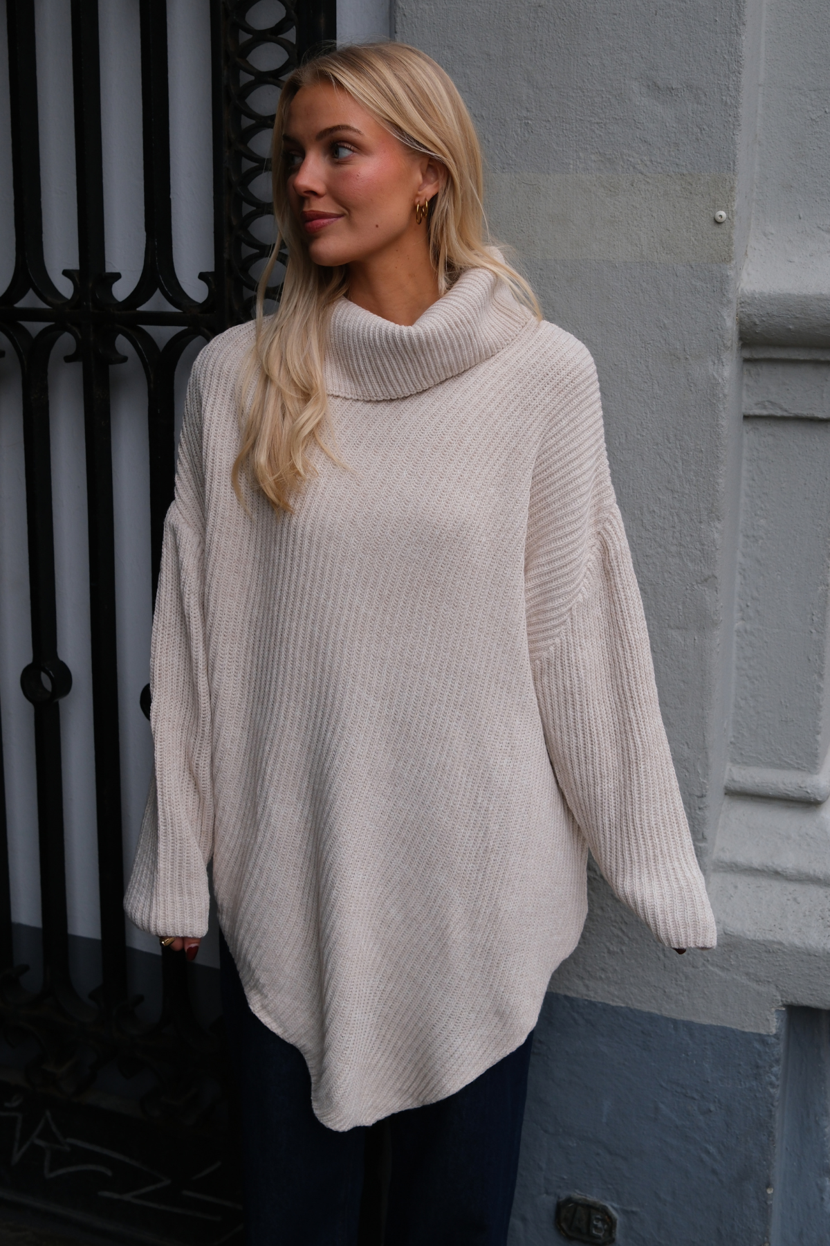 Designet er holdt klassisk for at sikre maksimal anvendelighed. Den høje hals tilføjer et sofistikeret touch, der både holder dig varm og ser elegant ud. Den neutrale beige farve er en eviggyldig klassiker, der ubesværet kan matches med næsten alt, hvilket gør den til en alsidig favorit sæson efter sæson.