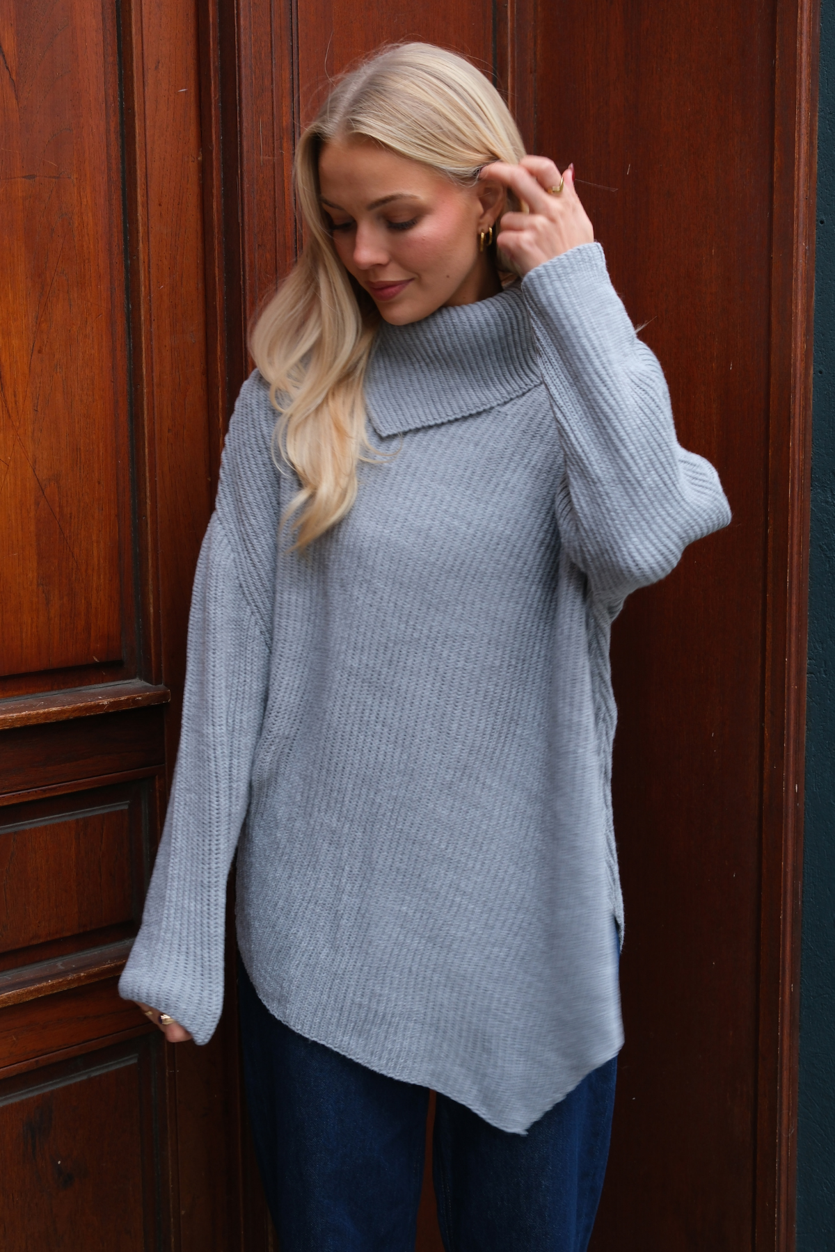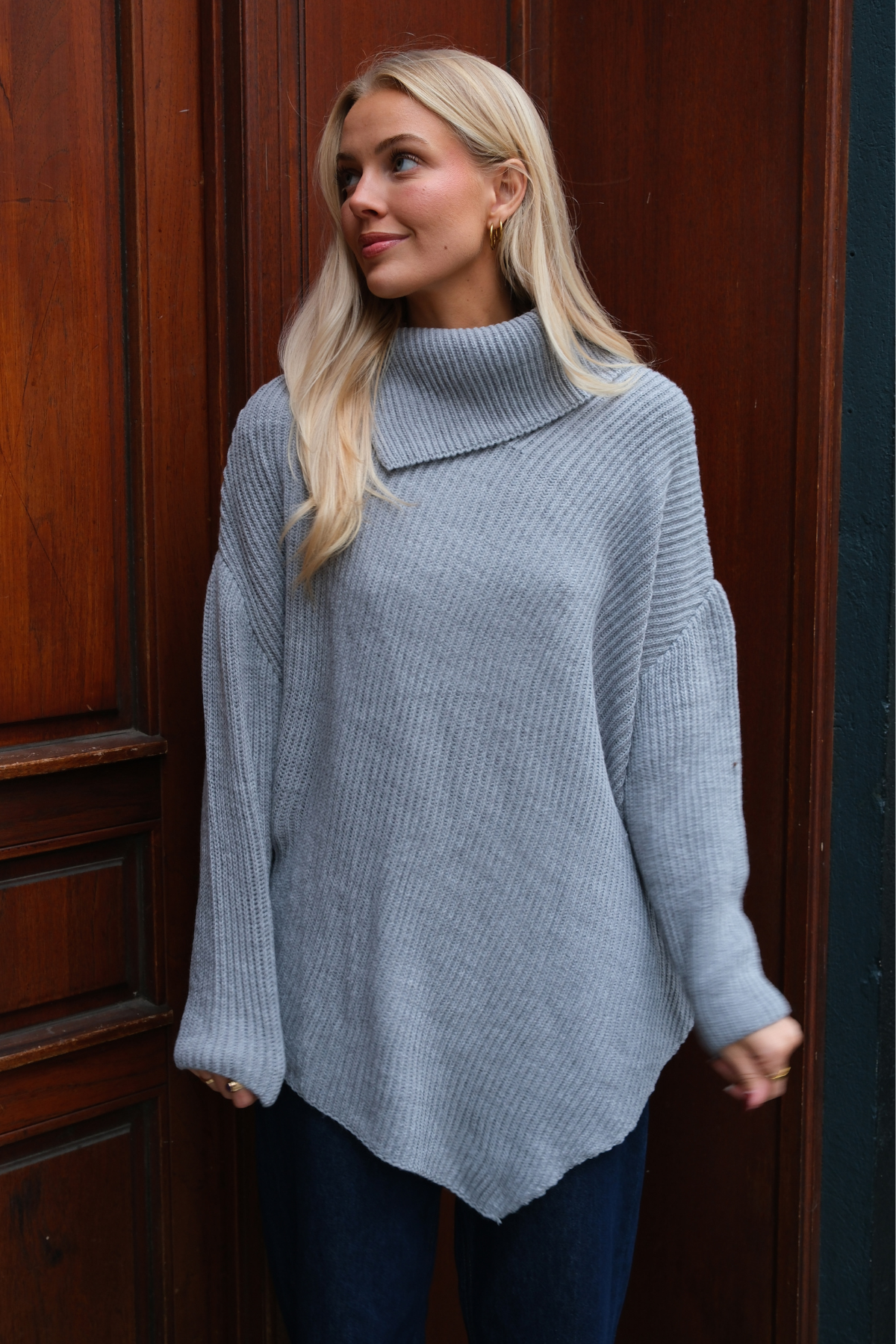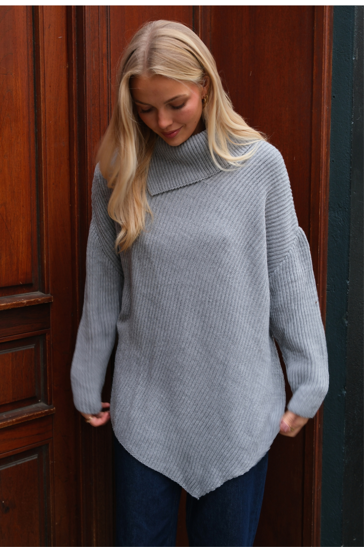 Lya Højhalset Strik: Din Nye Garderobefavorit i Tidløs Grå