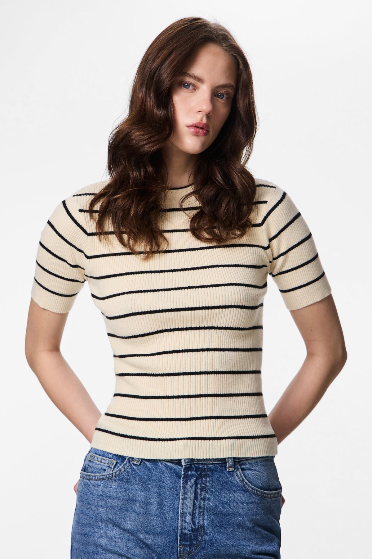 Opdag Mira O-Neck Knit - Birch Black: En Tidløs Klassiker fra PIECES