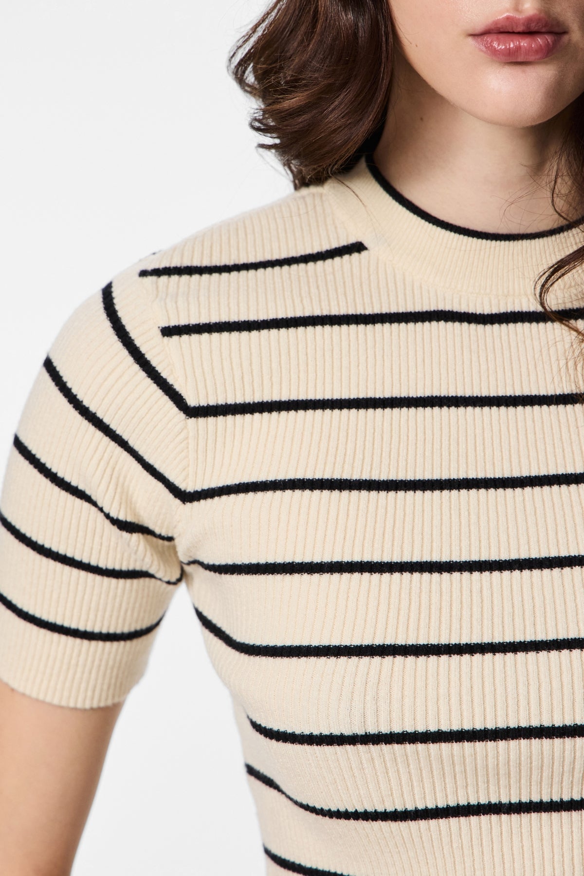 Denne strik med den klassiske runde halsudskæring er utrolig let at style. Det enkle snit og den neutrale, men interessante farvekombination, gør den til en sand kamæleon i din garderobe. For et afslappet og cool hverdagslook kan du bruge den sammen med dine yndlingsjeans. Ønsker du et mere poleret og professionelt outfit til kontoret, kan du med fordel kombinere den med et par elegante Pants og støvler. Trøjen fungerer også fantastisk som et ekstra lag over en skjorte, hvor kraven kan stikke frem for en fin detalje.
