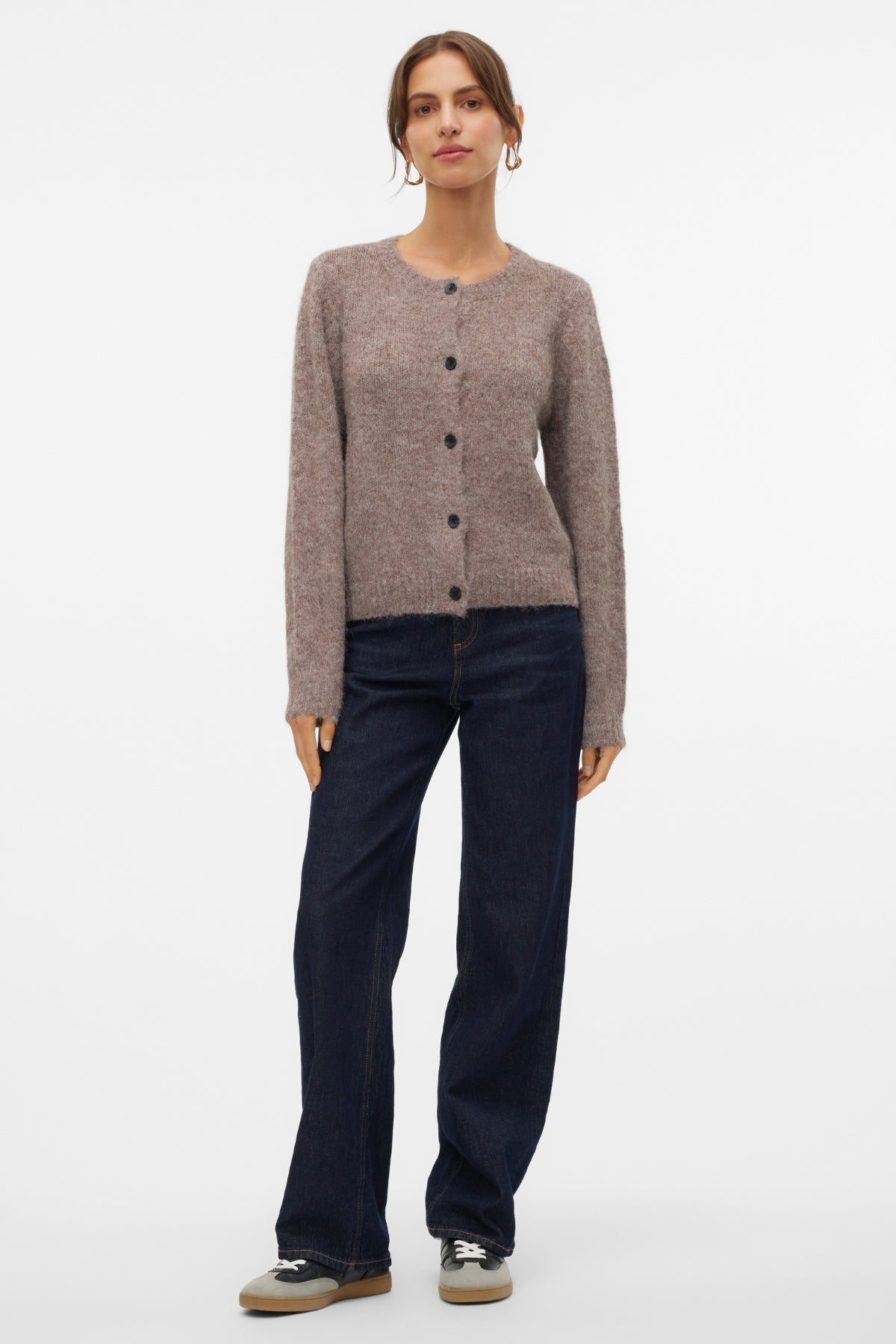 Det enkle O-Neck design og den gennemgående knaplukning gør denne cardigan utrolig alsidig. Du kan bruge den lukket som en bluse for et sofistikeret udtryk, eller bære den åben over en let top for et mere afslappet lag-på-lag look. Den rige Brown Lentil Melange farve tilføjer dybde til dit outfit og passer smukt sammen med efterårets og vinterens farvepalet.