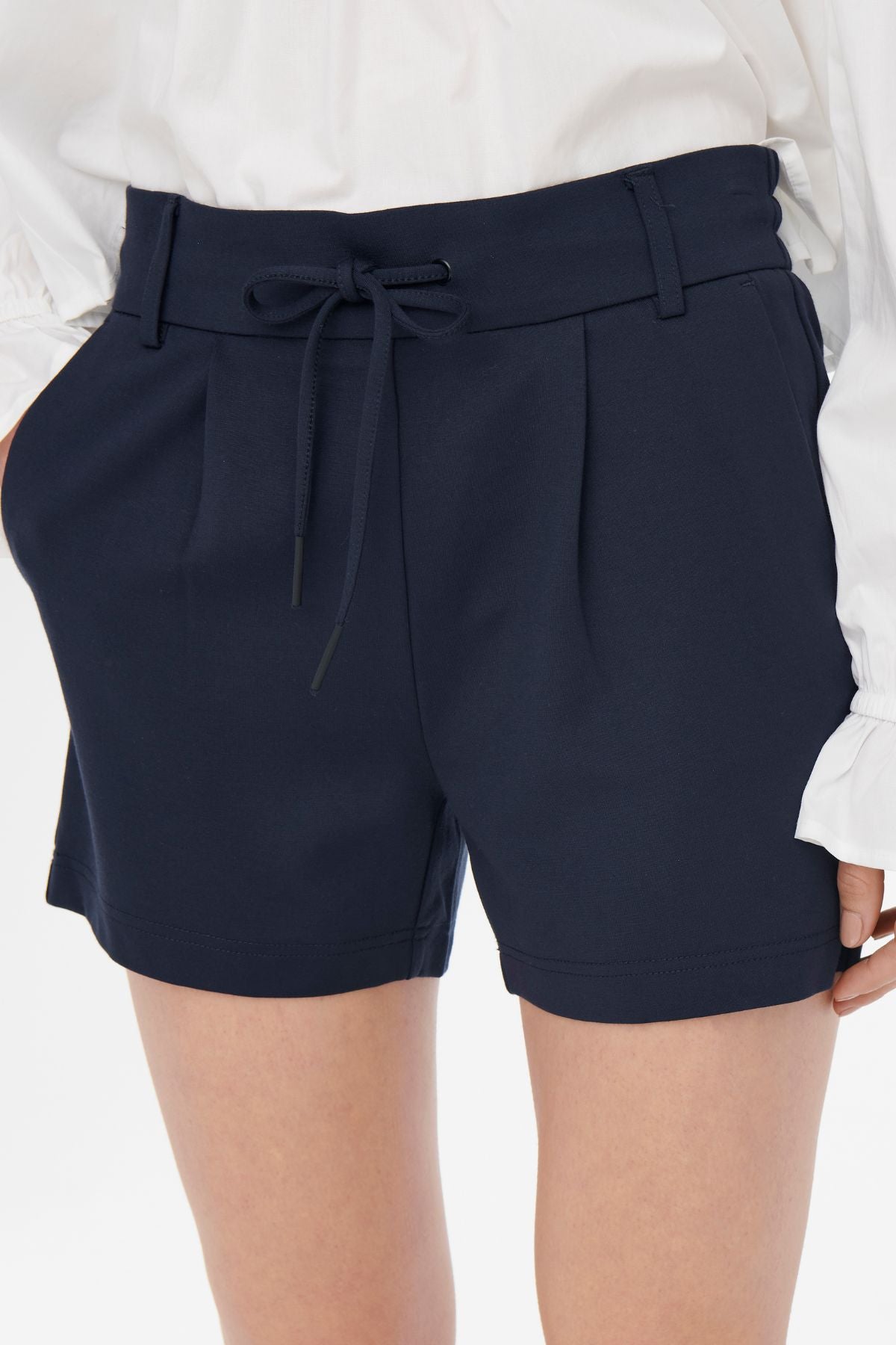 En af de største fordele ved disse shorts er deres utrolige alsidighed. Den sofistikerede Navy farve fungerer som en perfekt base for utallige outfits. Til en afslappet dag på stranden eller en hyggelig tur i parken kan du style dem med en simpel hvid T-shirt og et par sandaler for et ubesværet sommerlook. Skal du derimod til frokost med veninderne eller en dag på kontoret, kan de nemt opgraderes med en pæn skjorte, en blazer og et par stilfulde loafers eller stiletter. Det elastiske taljebånd sikrer ikke blot en fantastisk pasform, men tilføjer også et sporty touch, der er meget moderne i nutidens modebillede.