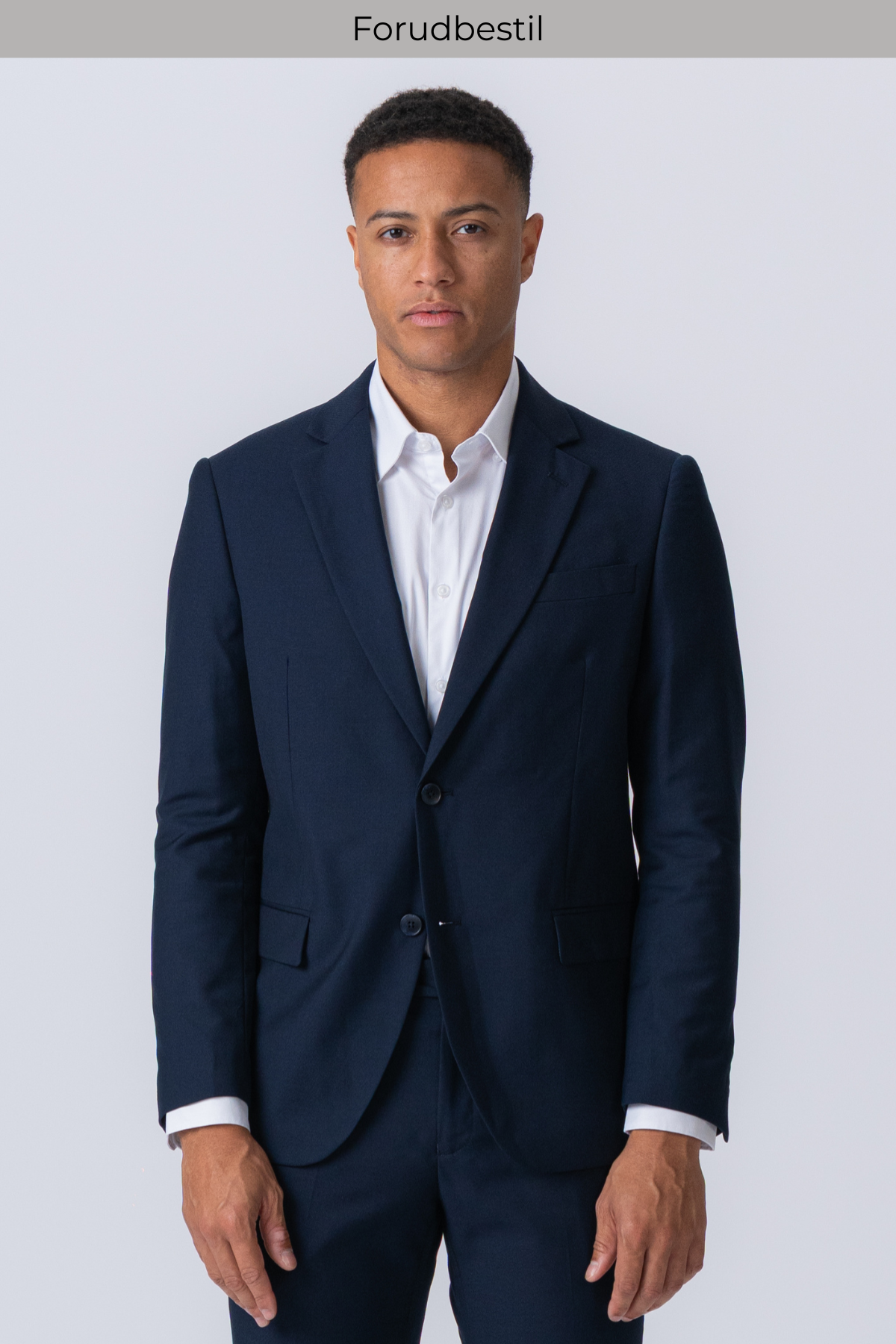 Tidløst Design: Det klassiske enkelttradede snit og den alsidige navy farve går aldrig af mode.